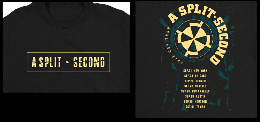 A SPLIT-SECOND 2023 TOUR SHIRT $25ONLY A HANDFUL LEFT. Quality Tultex cotton. $25 |