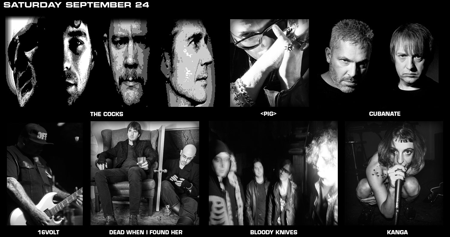 COLD WAVES' goal to showcase Chicago's relationship with industrial music featuring rare and classic fore bearers along with innovative newcomers was never more realized than with its 2015 line up. The godfather of industrial doom, Justin Broadrick brings GODFLESH back to the US for their second tour since an almost 20 year absence⦠the same time away from our shores as SEVERED HEADS, the Australian electronic trailblazers with a slew of iconic Nettwerk Records releases. Also championing a near 2-decade American hiatus, POP WILL EAT ITSELF should have many a music bucket-list keeper making check marks. Featuring original Skinny Puppy member Bill Leeb, FRONT LINE ASSEMBLY promises classic material from their Wax Trax! days, along with LEAD INTO GOLD, the iconic Paul Barker (Ministry, Revolting Cocks) project and their debut performance? Often credited with inventing the dark ambient genre and an original member of SPK, Brian Williams brings LUSTMORD to the Chicago stage for the first time. No less music royalty when regarding the Chicago stage, Chris Connelly's new project COCKSURE promises to revive the true spirit of all things Revolting along with festival organizer Jason Novak. Leaving last year's audience in awe made it easy for AUTHOR+PUNISHER to book a rare back-to-back festival appearance, literally the physical embodiment of industrial music, along with another technical innovator, Matt Schultz's long dormant LAB REPORT and his anti-tank-guitar. Keeping things mysterious and experimental, New York's dark prince of noise and Hospital Productions founder Dominick Furnow will bestow a rare PRURIENT performance upon us. Electro fire starters HIGH-FUNCTIONING FLESH play the role of LA industrial critical darling this year. Already a household name synonymous with heavy music production in Chicago, Sanford Parker unveils TWO FROM THE EYE. Finally, Kansas City's HUMAN TRAFFIC kick things off with a new style of l'enfant terrible electro-grime punk. A portion of the proceeds will benefit Hope For The Day, a local suicide prevention charity using music and the arts to reach those in need. We are proud to announce the one-two punch of our sponsors, Kumas Corner and Revolution Brewing, two names in Chicago food and beverage that couldn't be closer to the Cold Waves identity and spirit than if we started them ourselves. |